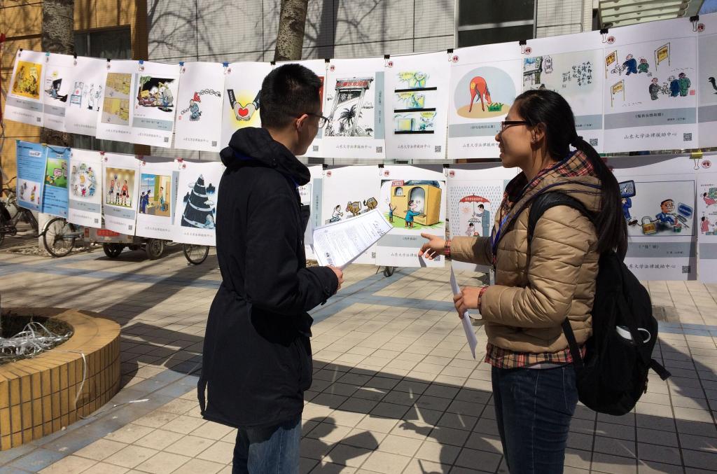 本次活动分为消费维权案例漫画展览、消费权益法律知识宣传以及现场维权法律咨询等环节,来自校研会权益部以及法律援助中心的成员们对往来学子进行了热情的讲解,现场法律咨询台更是由省消协王主任以及来自法援的维权精英坐镇,对校内师生提出的消费权益困惑进行答疑支招。
